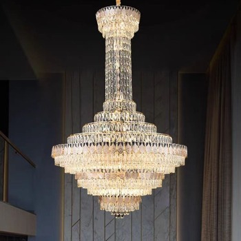 Đèn chùm pha lê sang trọng hiện đại lớn treo ánh sáng cho trần nhà cao điều chỉnh chiều cao cho phòng biệt thự và cầu thang
